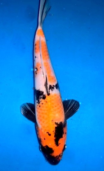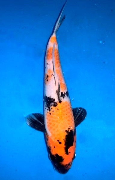 Dieser Koi kommt aus einer Innenanlage. Die Farbe wird sich noch brillanter entfalten, wenn er Sonne genießt.